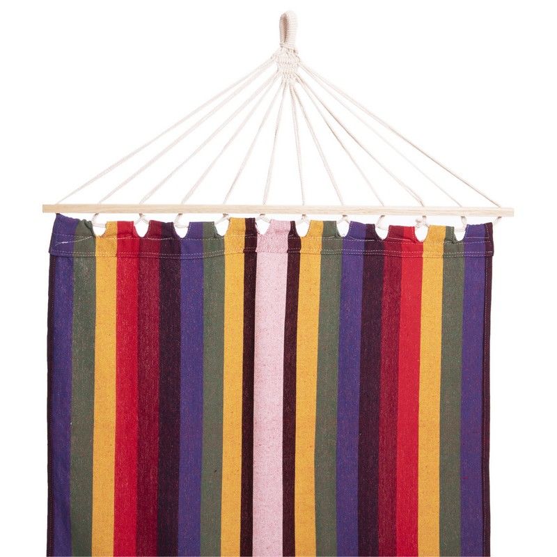 Яркий, хлопковый гамак без перекладин TO-615 - это комфортный гамак, в котором можно хорошо расслабиться и насладиться звуками природы. Данный гамак прочный и, главное, удобный, именно эти характеристики являются самыми важными для гамака. Также его не сложно устанавливать. Гамак – простое изделие, которое позволит с комфортом отдыхать и спать на природе, даче, во время похода. В собранном виде